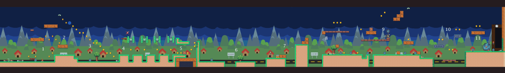 For the primary game software engine I used “I Wanna Maker” to show off the level design and I took inspiration from Mario Bros level 1-1.