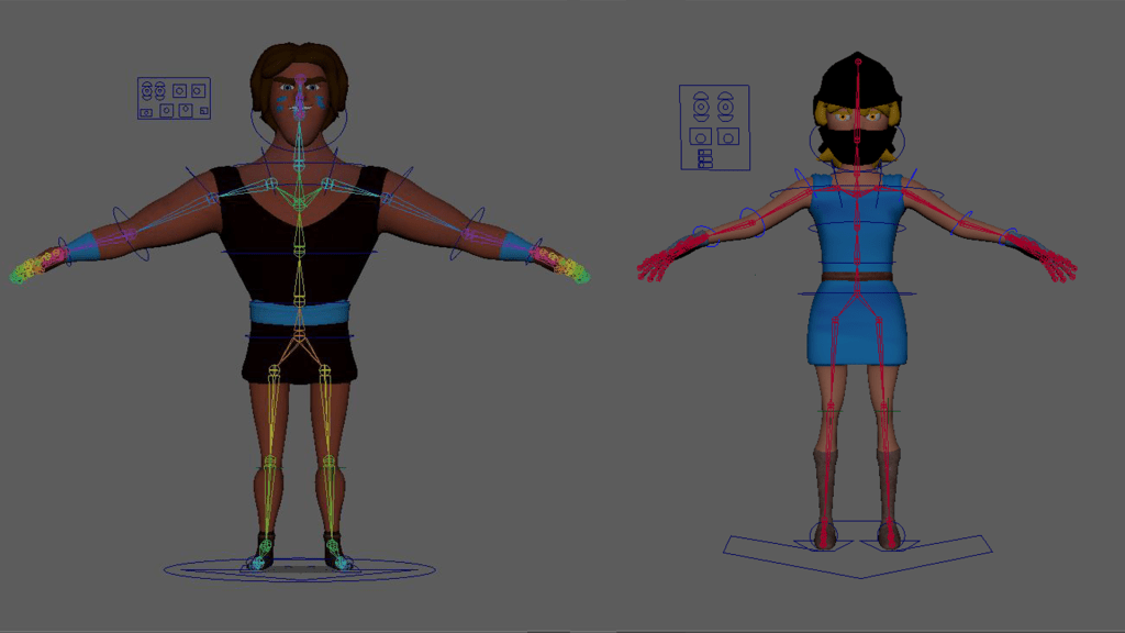 The models where created in Maya, then exported to Zbrush, then back to Maya for uv’s then to Substance Painter, then back to maya to be rig, later animated and rendered.