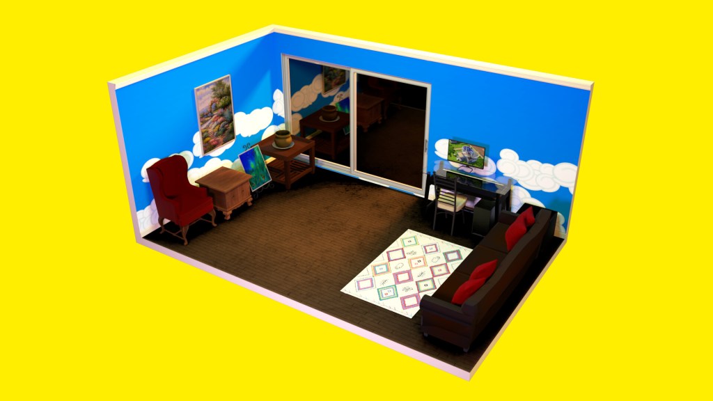 I was inspired by the Sims 4 to create a stylized version of my dream house. I was a bit pressed in time so I did the next best thing, I modeled my grandmothers living room and stylized it. The goal was to create a very low poly living room ready to be used in a video game environment. To do this I modeled everything low poly and kept the textures on the surface quite stylized.