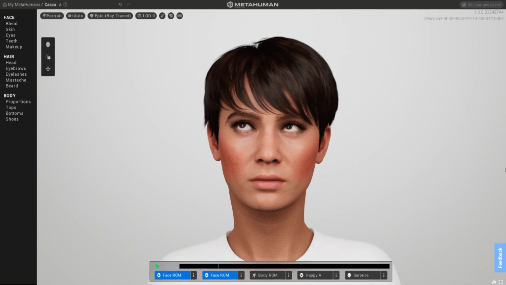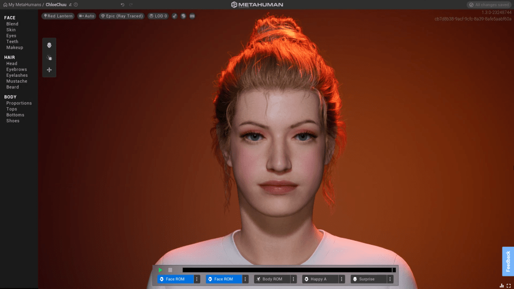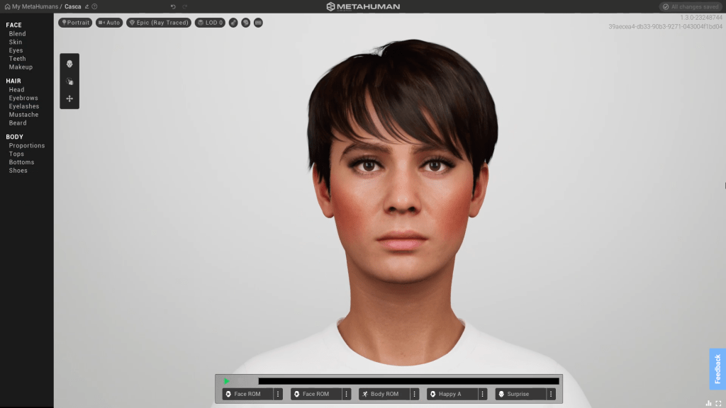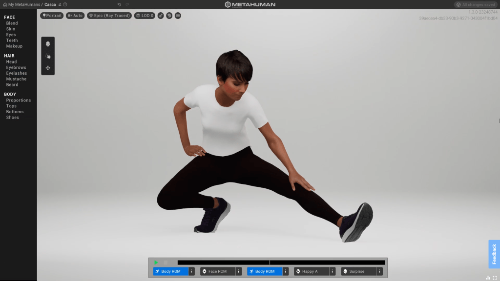 Beta tested Unreal Engines Meta Humans, human creator to be imported into video games.