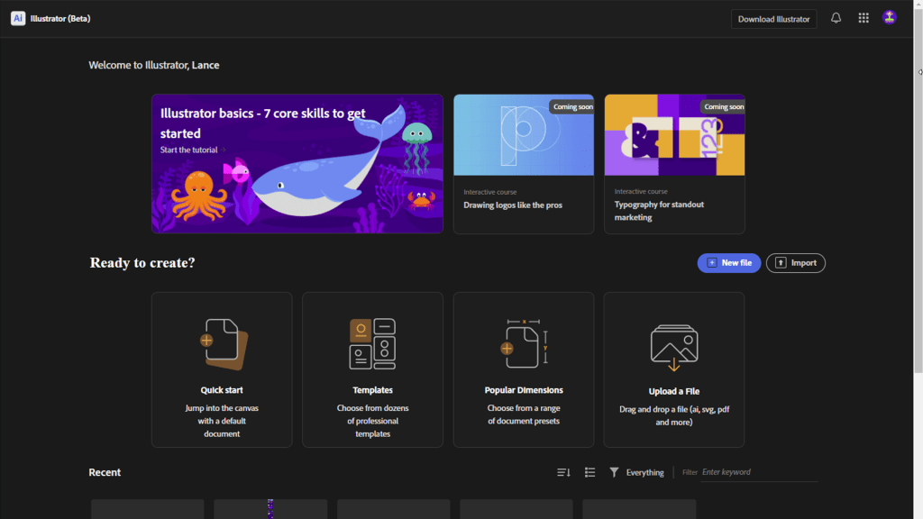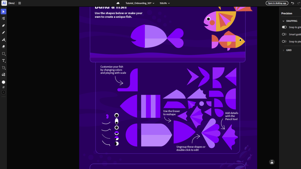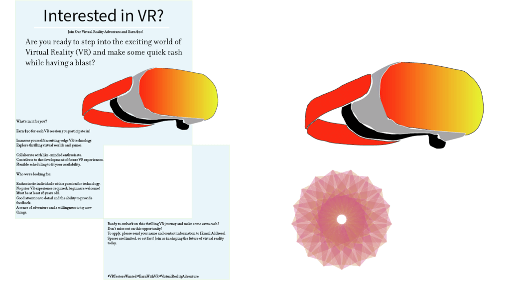 Prompt: Navigate to Illustrator on the Web and spend hours creating 1-2 of the following outputs. What you create should be related to your typical design / communication needs (we expect this will be different for every person)